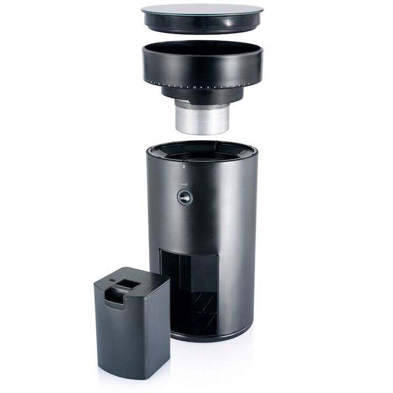 Крышка кофемолки это весы с чувствительностью 0,1 г. Легко подключается к вашему Iphone или мобильному телефону Android через Bluetooth.