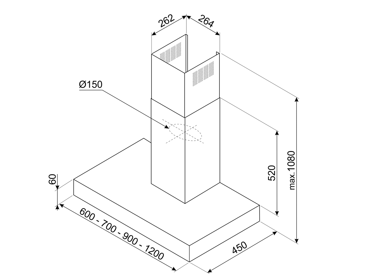 Диаметр воздуховода – 150 мм