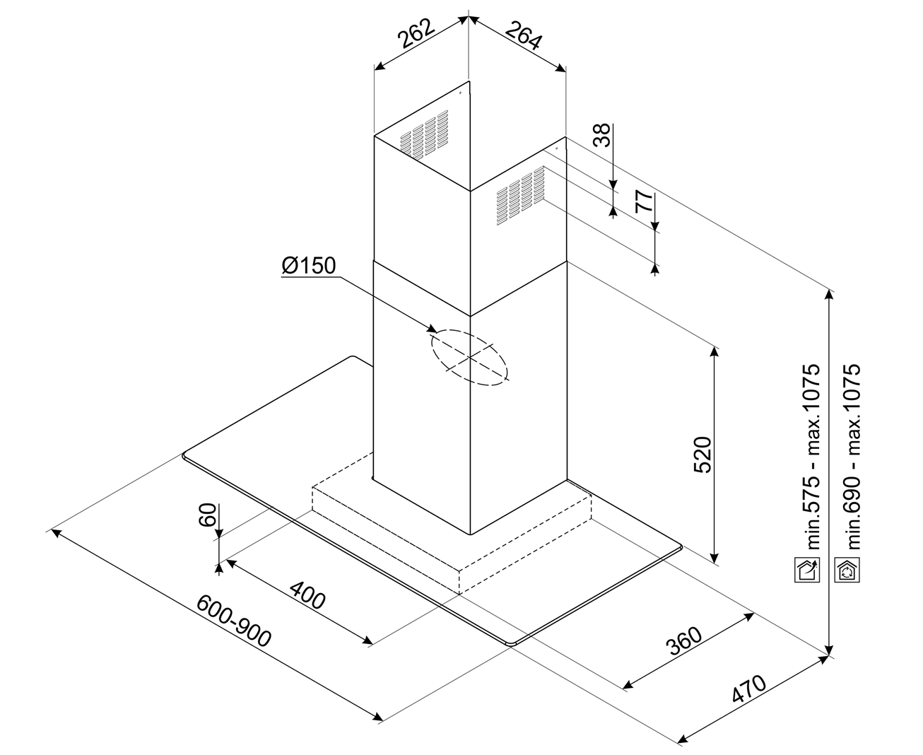 Диаметр воздуховода – 150 мм