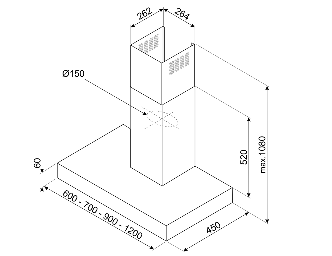 Диаметр воздуховода – 150 мм