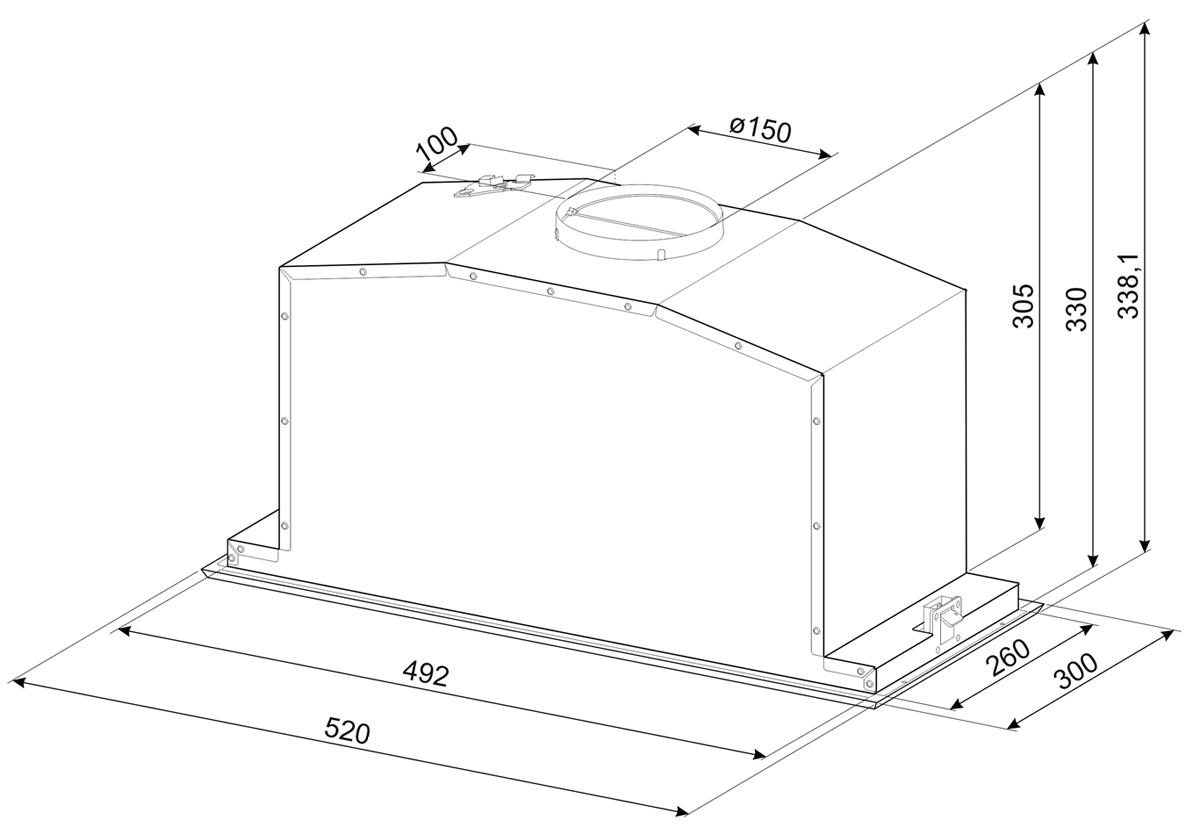 Минимальная высота монтажа над газовой панелью – 650 мм, над электрической – 650 мм