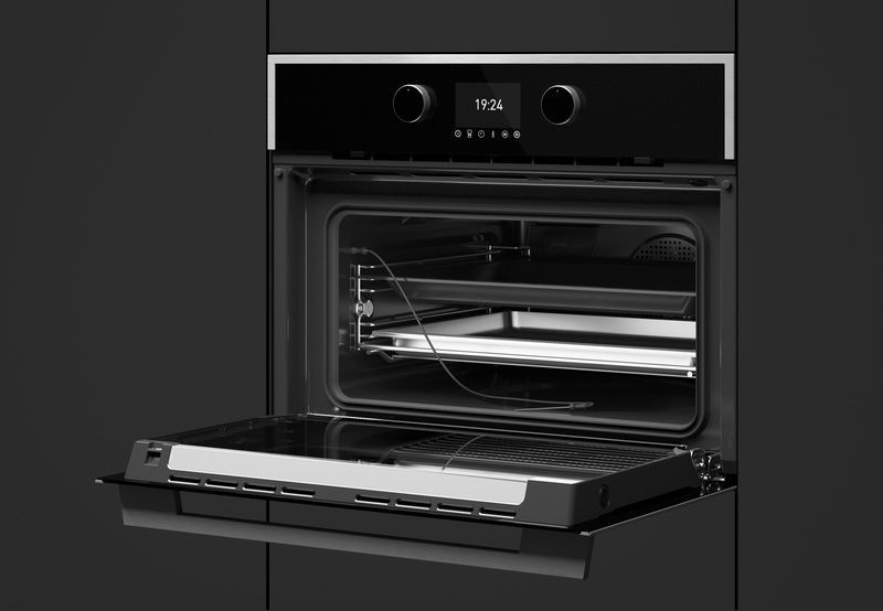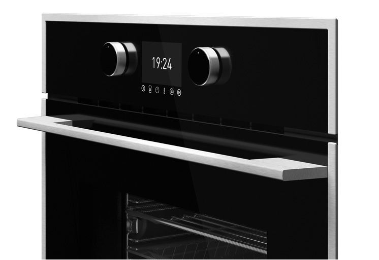компактный мультифункциональный духовой шкаф с пароваркой, 15 режимов приготовления + 20 рецептов + Hydroclean, объём 44 л, фиксированные глянцевые регуляторы с металлическим ободком с подсветкой, стеклянная сенсорная панель управления + жидкокристаллический TFT, бело-красный дисплей 4”, нержавеющая сталь с защитным покрытием от следов пальцев, плавный доводчик двери, протектор для защиты от ожога грилем, автоматический быстрый разогрев, разморозка, турборежим, PIZZA (нижний нагрев + турбо), ECO режим, функция медленного приготовления, функция пароварки 30-100 °С, функции стерилизации и регенерации (подогрев с паром), ёмкость для воды на 1 л, инновационное покрытие Slippery, тангенциальная система охлаждения, рельефное дно камеры с углублением для воды для чистки Hydroclean, функция сушки камеры, внутренняя поверхность дверцы из закалённого стекла, трёхслойная термоизолированная дверца, 2 съёмных внутренних стекла, автоматическое отключение при открытии дверцы, блокировка для безопасности детей (таймер и дверь), температурный диапазон 30-270 °С, телескопические направляющие Easy Slide на 1 уровне, 4-хуровневые хромированные направляющие, термощуп, 1 глубокий противень (50 мм) с покрытием Slippery, 1 перфорированный противень из нержавеющей стали, класс энергопотребления А+, кабель 150 см + Shuko, подсветка галогенной лампой G9 25 Вт, максимальная номинальная мощность 3400 Вт