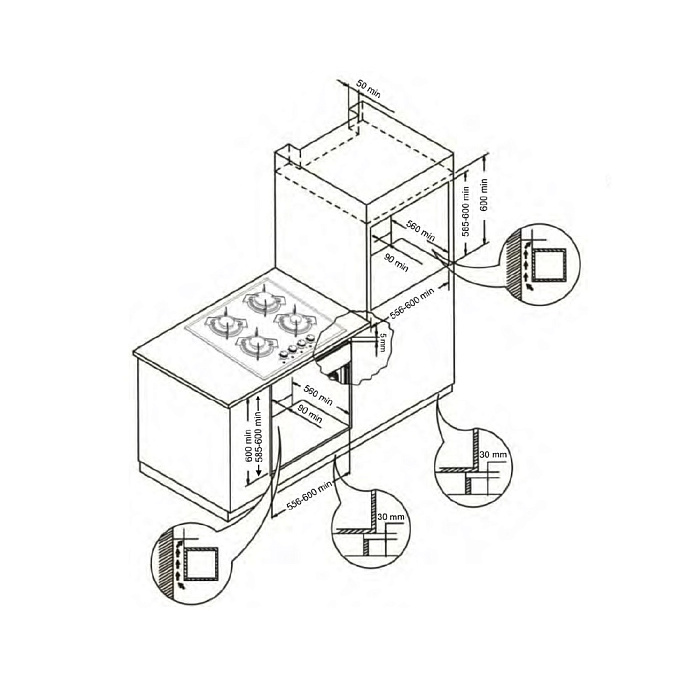 6 режимов, объем духовки 68 л, поворотные переключатели,