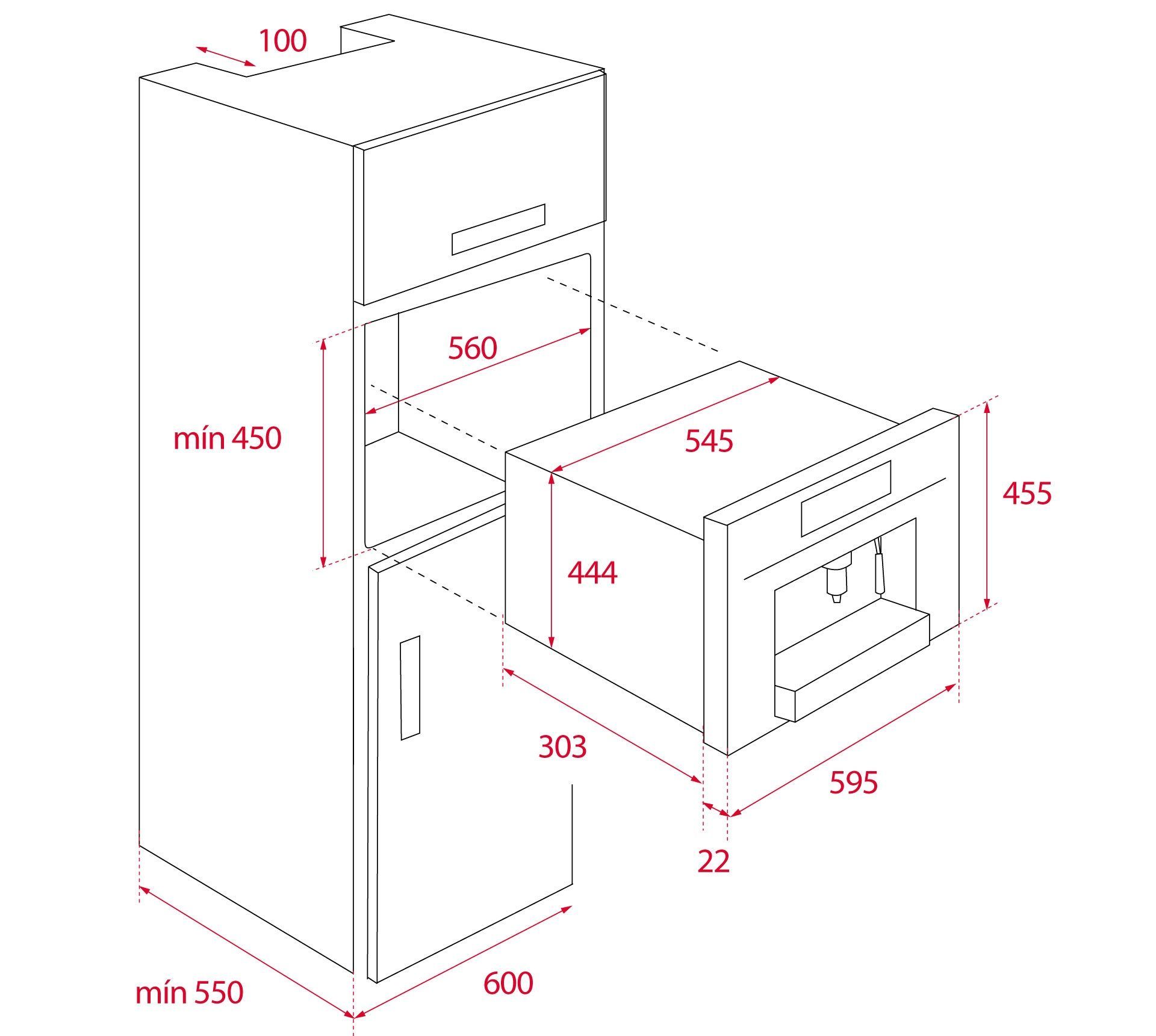 встраиваемая кофеварка с 5 адаптерами для капсул и молотого кофе, TFT-дисплей и поворотные регуляторы,  вместимость: 1 чашка, выдвижная трубка для пара и горячей воды, 3 функции (кофе, пар, горячая вода), ёмкость для воды: 1 л, автоматическая декальцинация, регулировка температуры кофе, регулировка крепости кофе: экстра-сильный, сильный, средний, лёгкий, экстра-лёгкий, индикация: выбранная функция, заполнить ёмкость для воды, декальцинация; два ящика для хранения по бокам и один внизу, в комплекте: 5 адаптеров под капсулы и молотоый кофе, размеры: 595х455х330 мм
