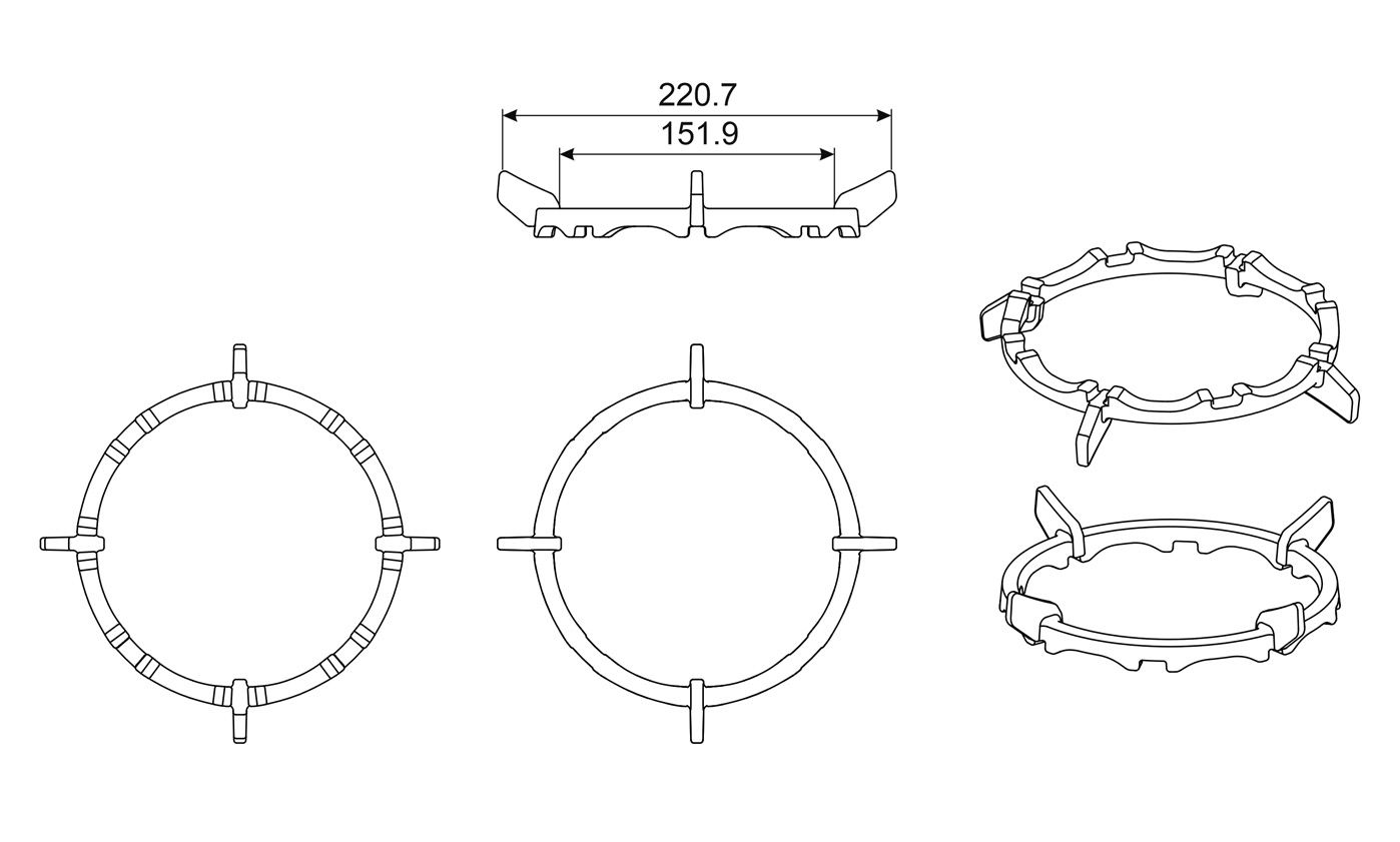 Подходит для газовых варочных поверхностей, варочных центров и плит с чугунными решетками.