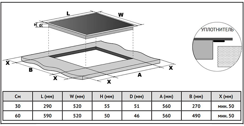 сенсорное управление Slider Touch, 4 зоны нагрева,