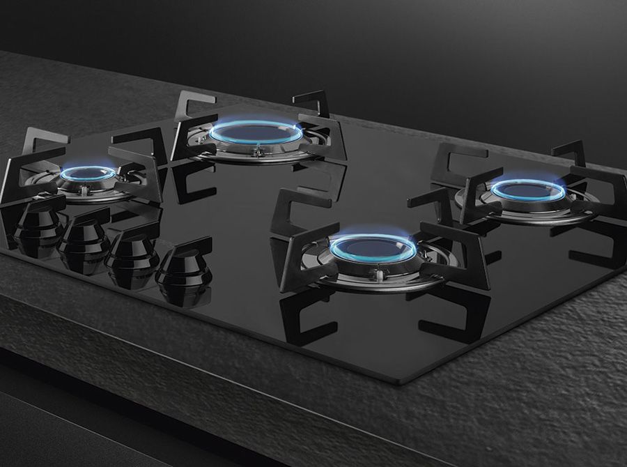 Эстетика: Цвет: чёрный; Отделка: стекло; Эстетика: Dolce Stil Novo; Материал корпуса: стекло; Тип стекла: стеклокерамика; 4 фронтальных поворотных переключателя; Цвет переключателей: чёрный; Тип края стекла: прямой край; Стекло на стали: да; Решетки: нержавеющая сталь; Покрытие решёток: титан; Горелки: Blade Frame; Материал горелок: латунь; Покрытие горелок: никель; Цвет сериографии: серый.