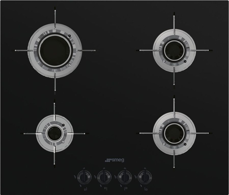 Зоны приготовления: 4 газовых горелки с автоматическим электроподжигом и газ-контролем. Левая фронтальная конфорка, вспомогательная (1 кВт), Левая задняя конфорка, быстрая (2,9 кВт), Правая фронтальная конфорка, полубыстрая (1,6 кВт), Правая задняя конфорка, полубыстрая (1,6 кВт).