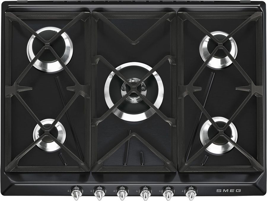 Зоны приготовления: 5 газовых горелок с автоматическим электроподжигом и газ-контролем. Левая фронтальная конфорка, вспомогательная (1,1 кВт), Левая задняя конфорка, быстрая (2,6 кВт), Центральная конфорка, ультрабыстрая (двойная/Wok, 5 кВт), Правая фронтальная конфорка, полубыстрая (1,7 кВт), Правая задняя конфорка, полубыстрая (1,7 кВт).