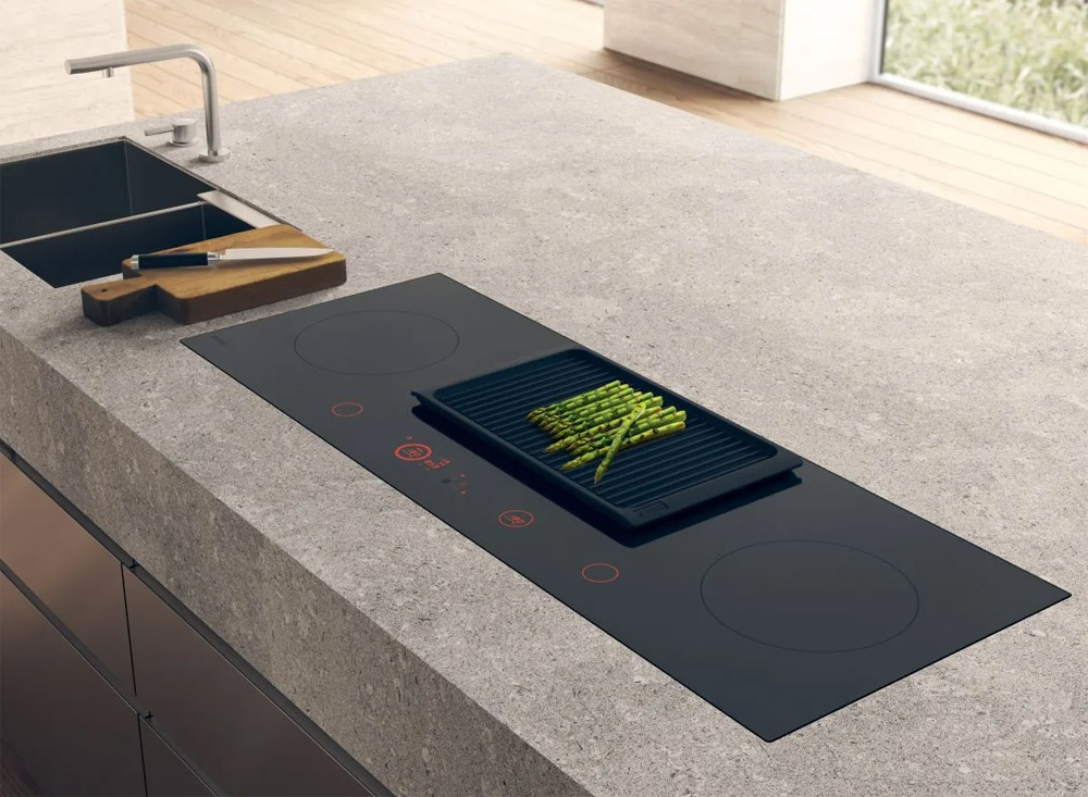 Функции индукционной варочной панели: Вок, жарка, автоматический разогрев, индукционный мост, приготовление на гриле, отваривание, тушение на медленном огне, перемещение