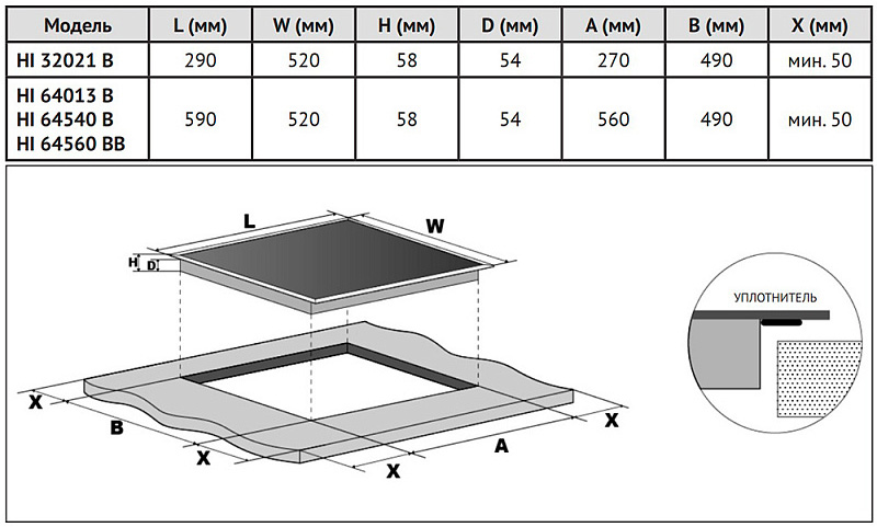4 индукционные зоны приготовления,