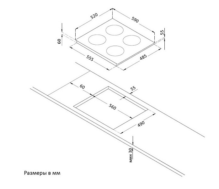 4 индукционные зоны нагрева: