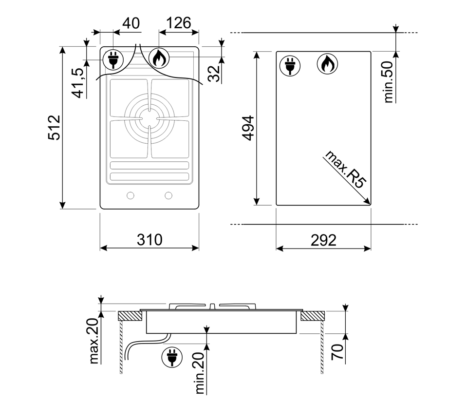 1 газовая горелка с двойным управлением – 5,2 кВт
