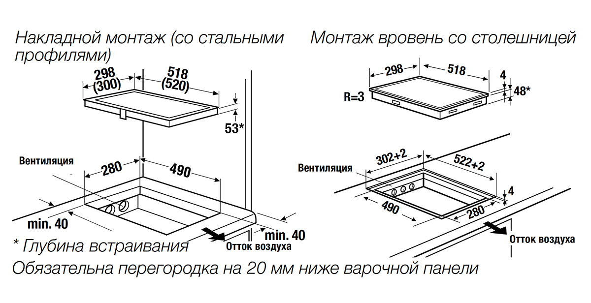 - 2 варочные зоны 255 x 200 мм / 1700 Вт (2000 Вт*)