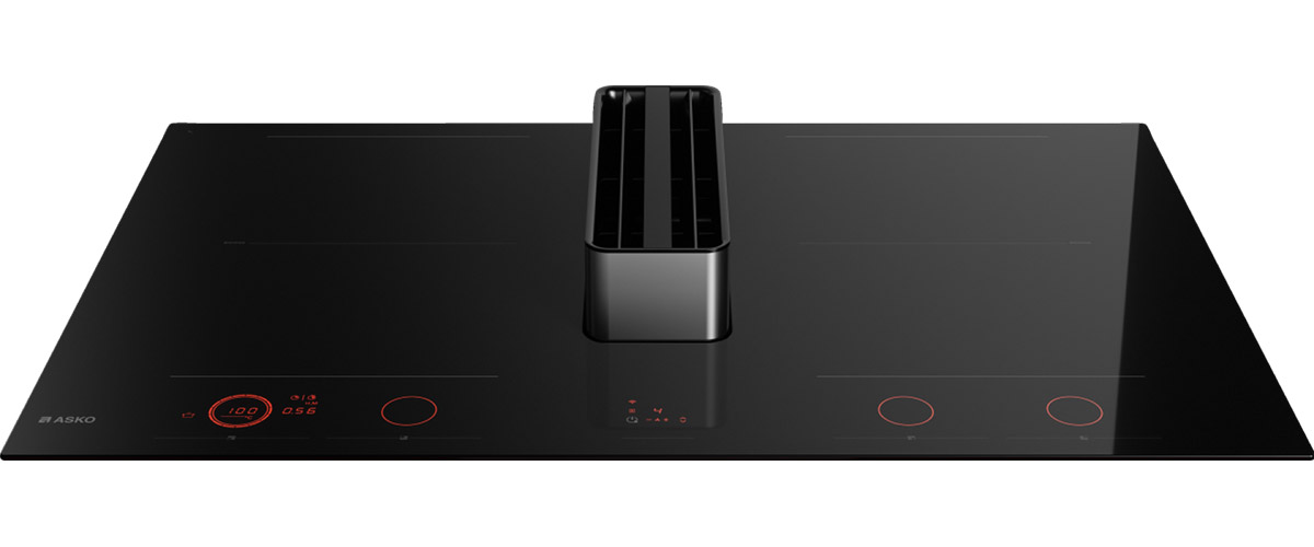 По умолчанию вытяжка автоматически поднимается при работе индукционной варочной панели. В поднятом положении вытяжка улавливает пары более эффективно особенно если вы готовите в высокой посуде.
